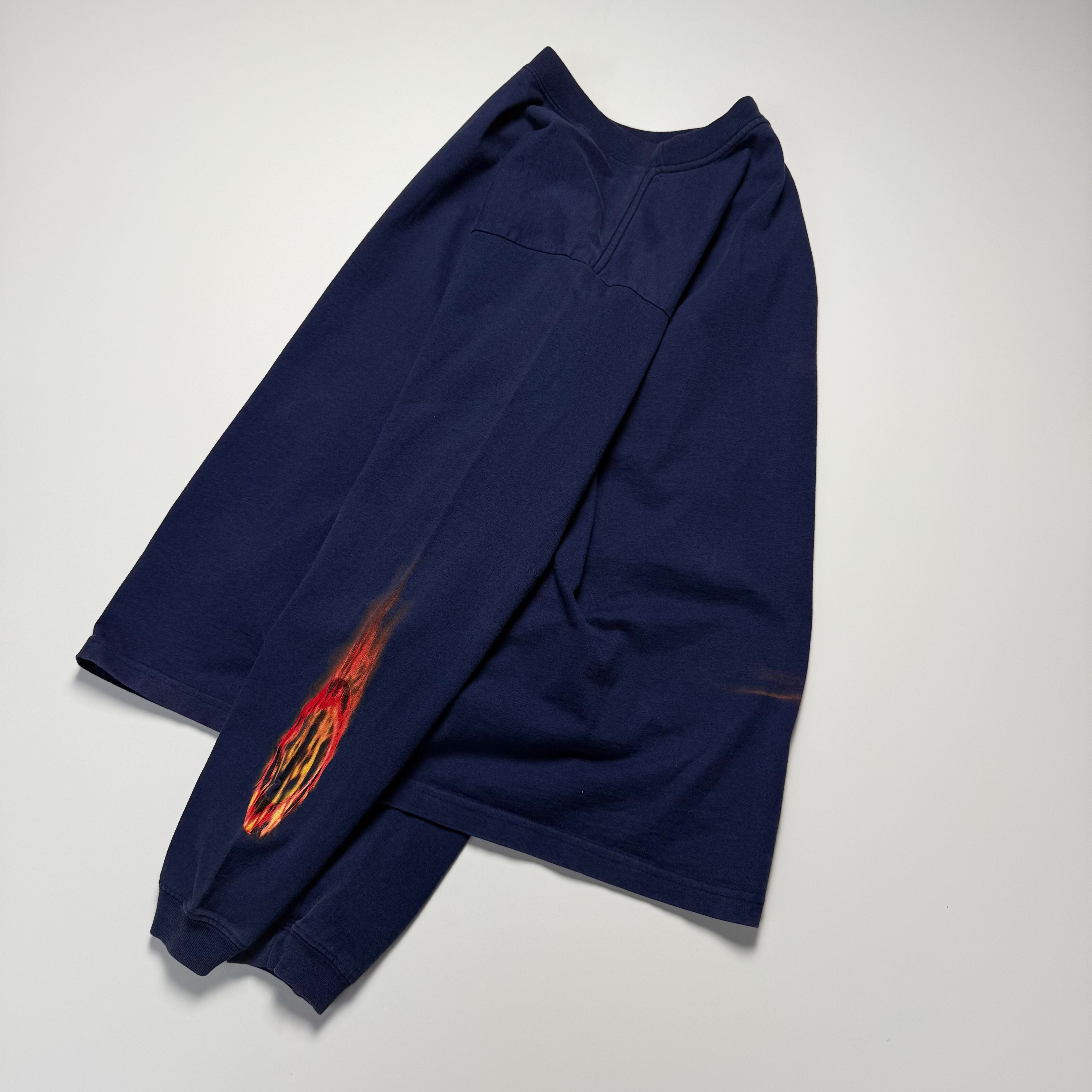 見慣れない位置の裾プリはBMXや板でバランスをとる時に腕を上げると見えるため。