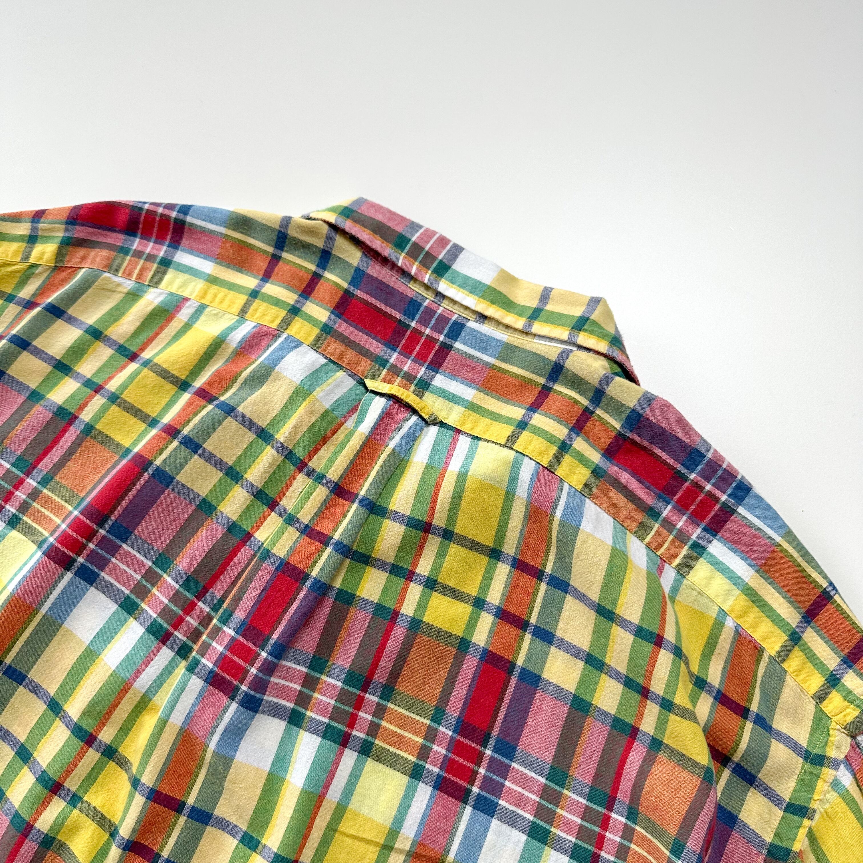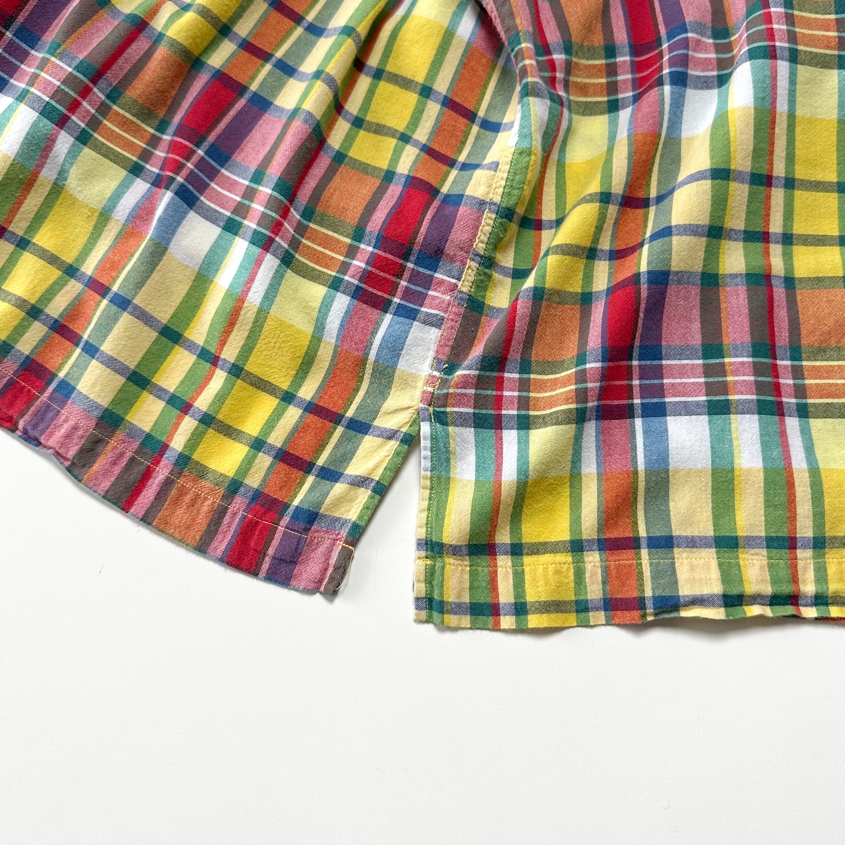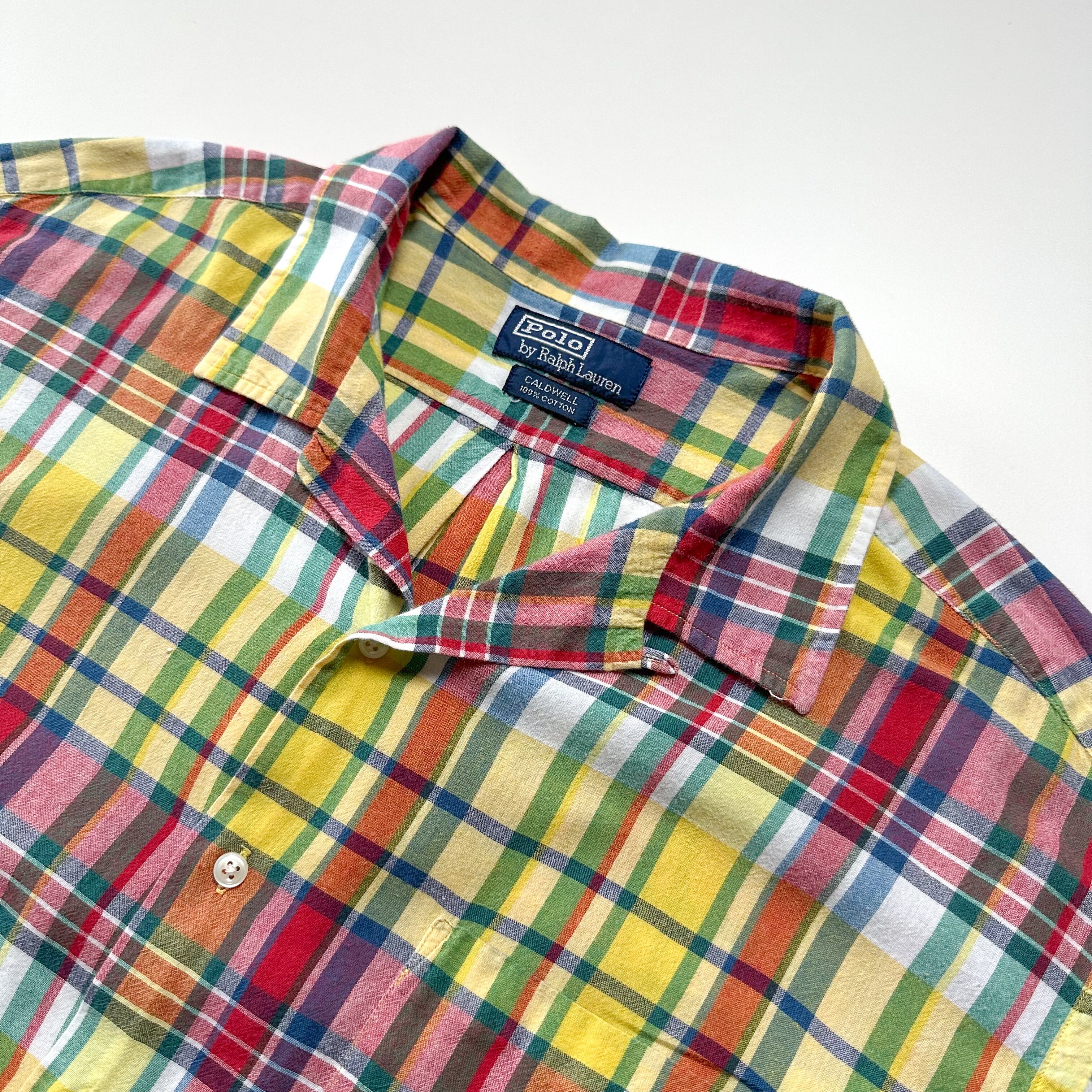 トラッドな印象のマドラスチェックをボックス開襟で着れるのはラルフならではかと。