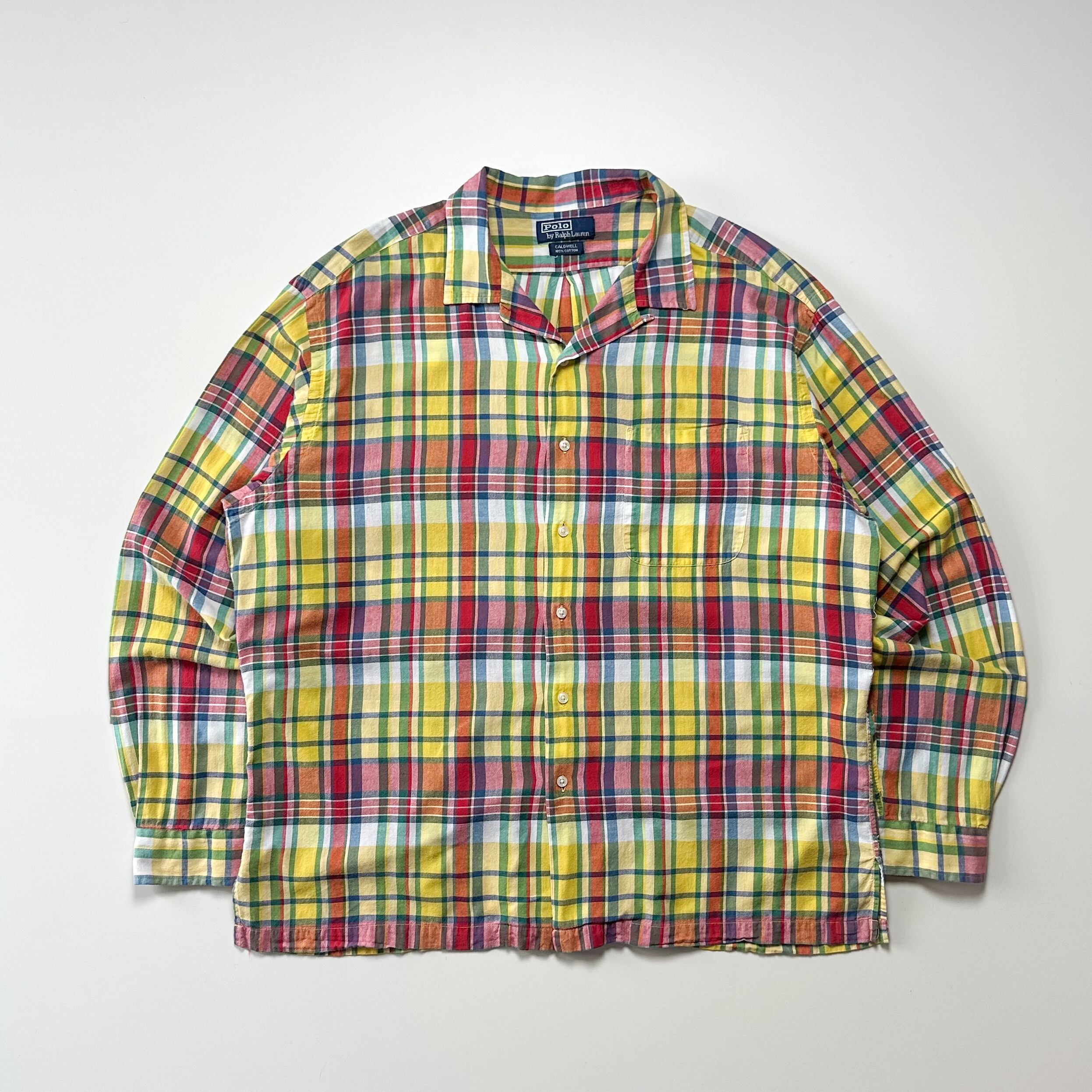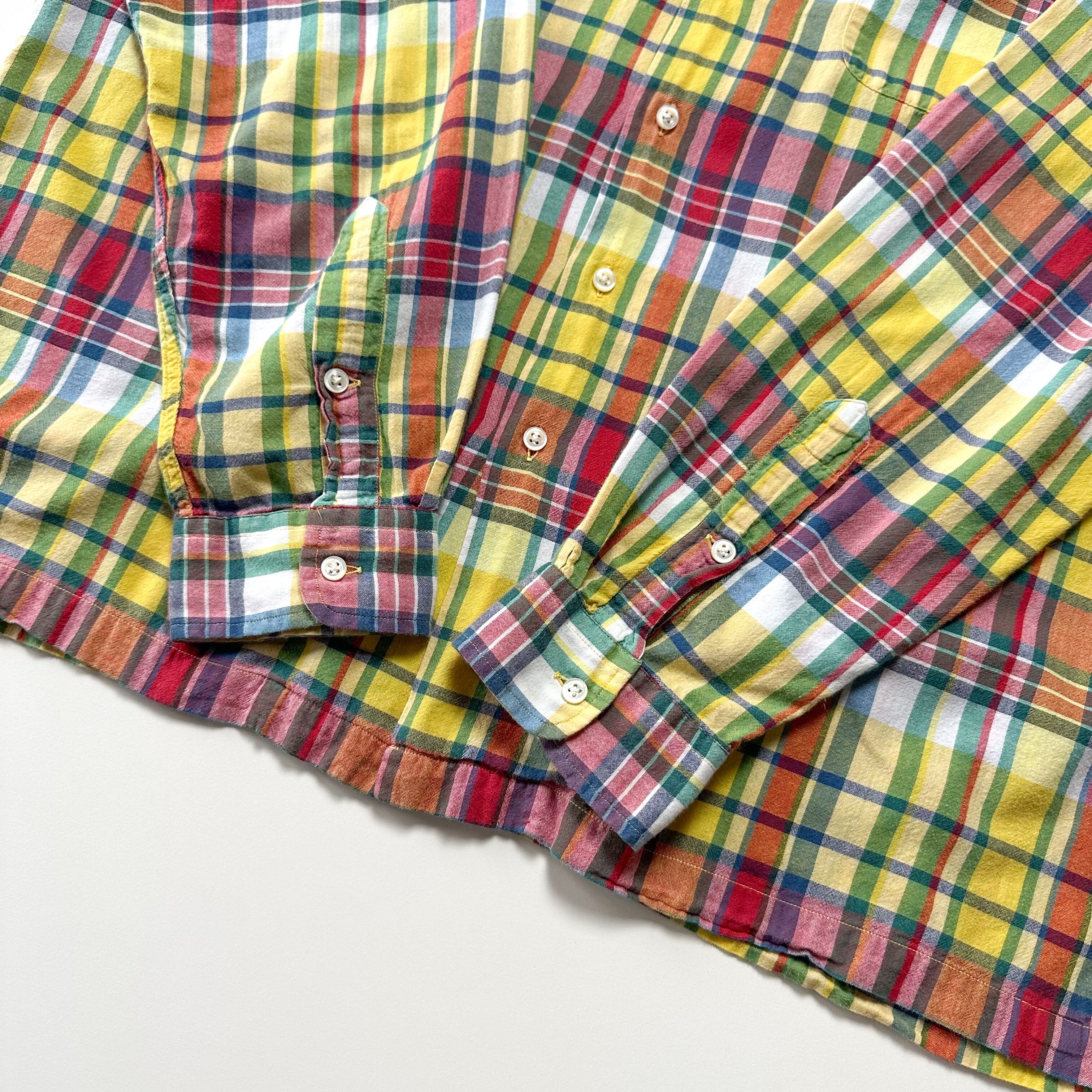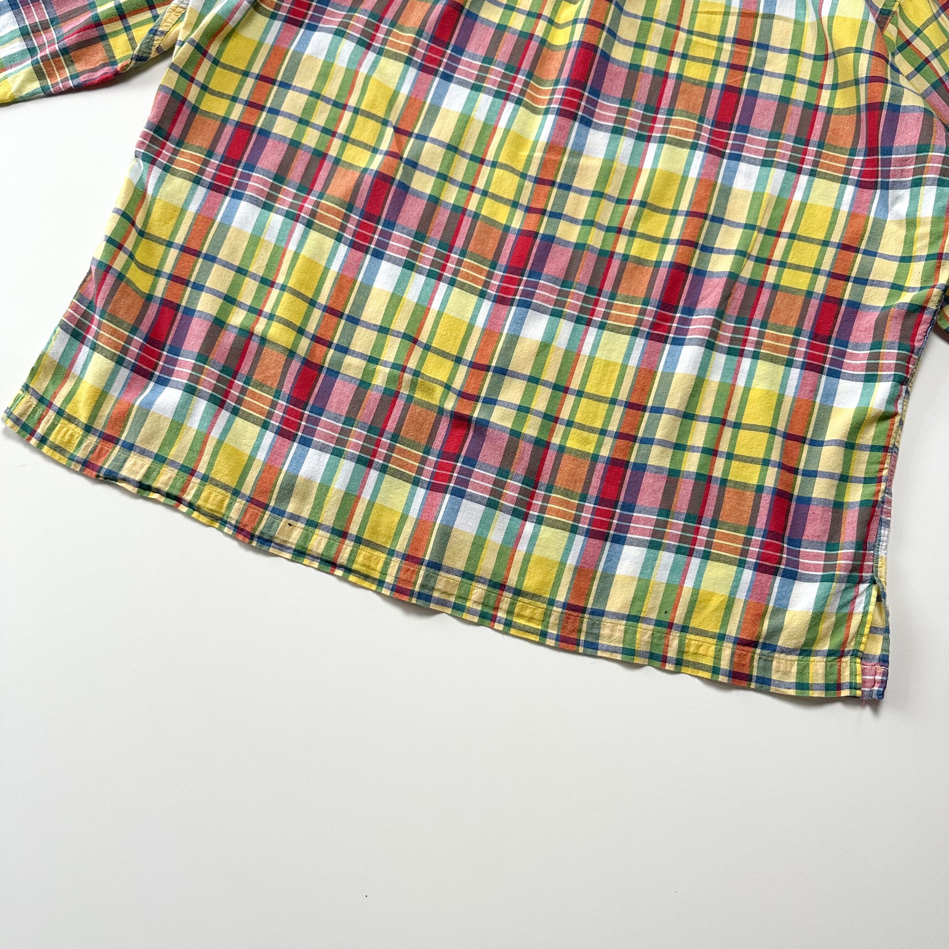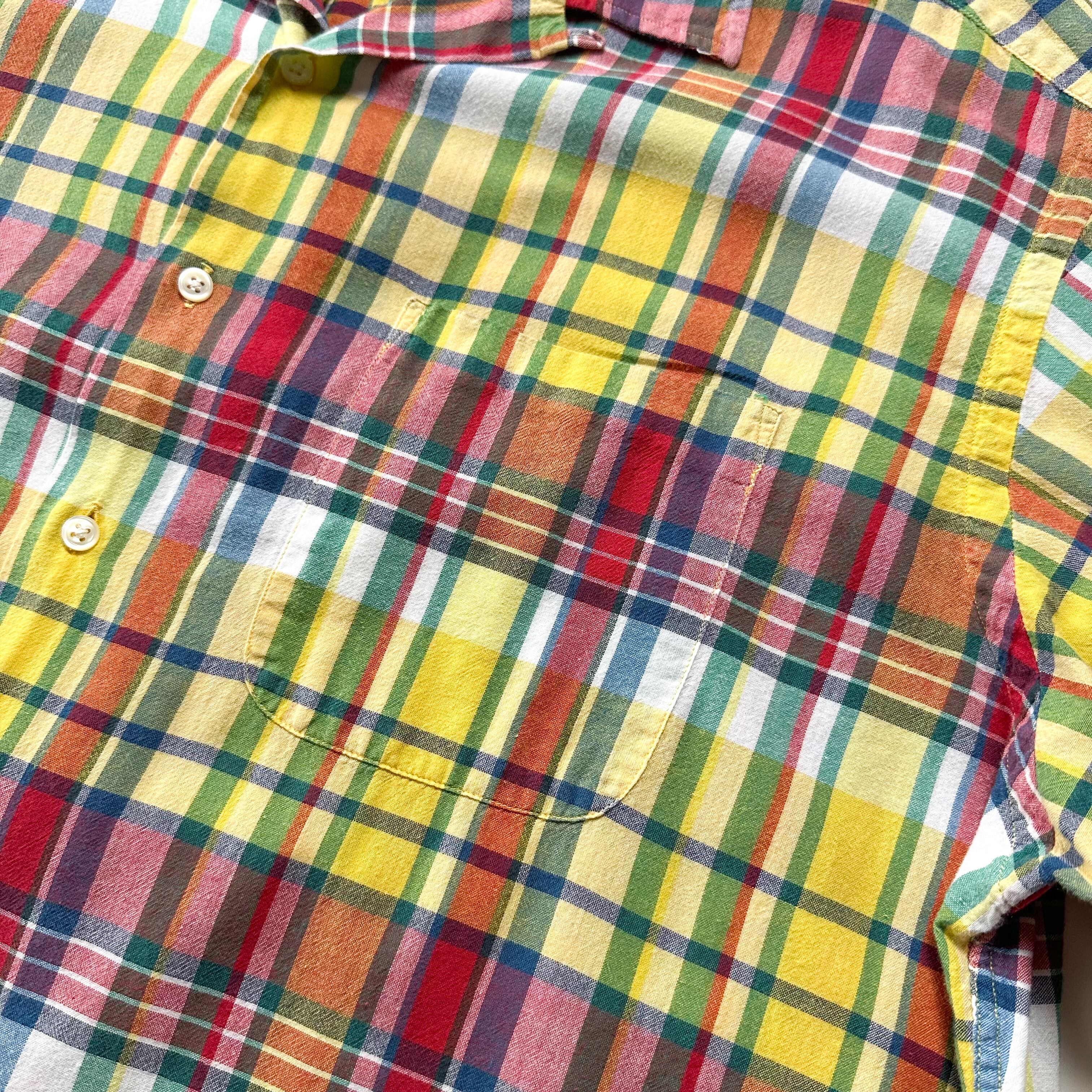 トラッドな印象のマドラスチェックをボックス開襟で着れるのはラルフならではかと。