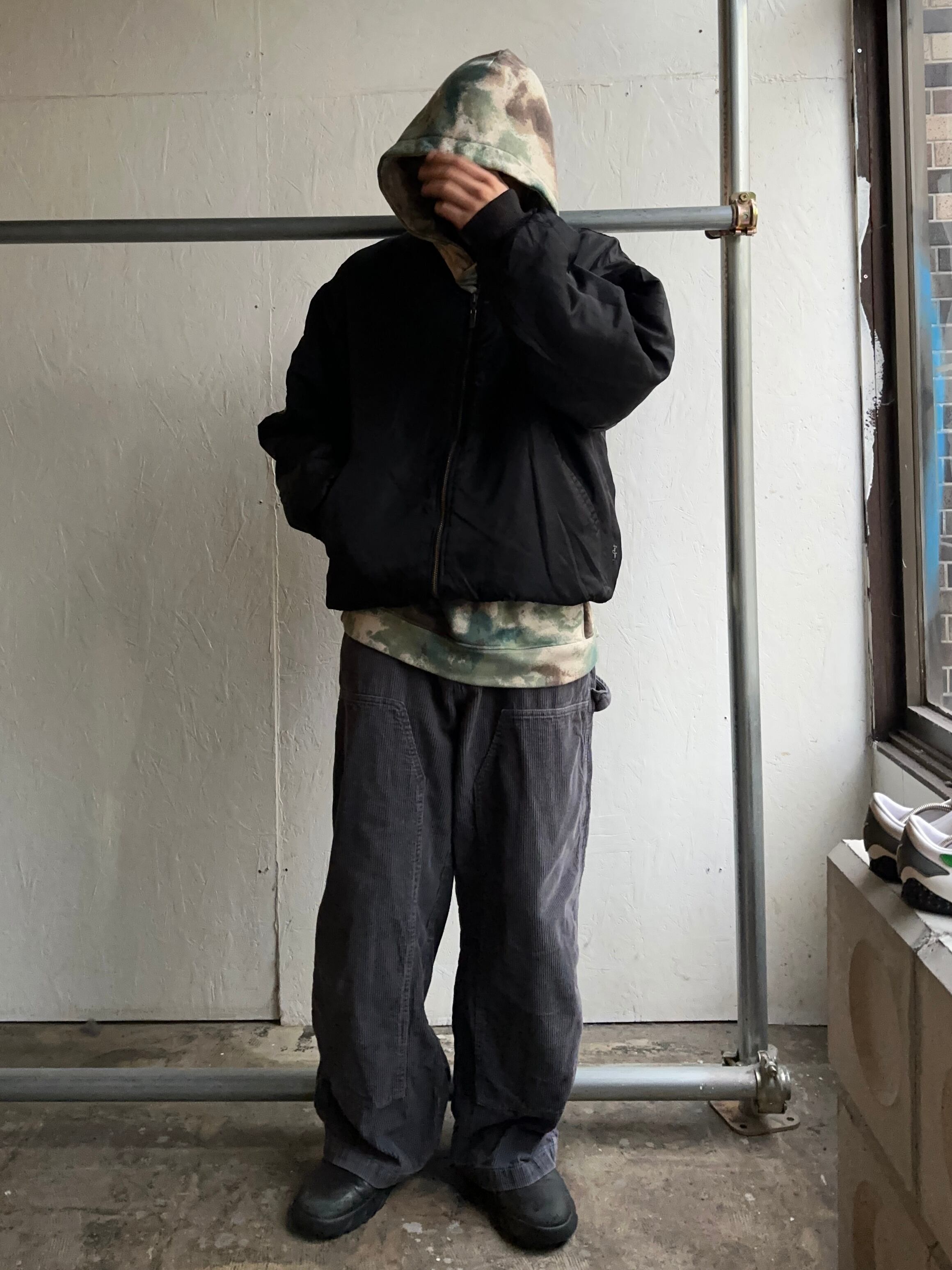 異素材ダブルニーでカーハートとはまた違った印象です。