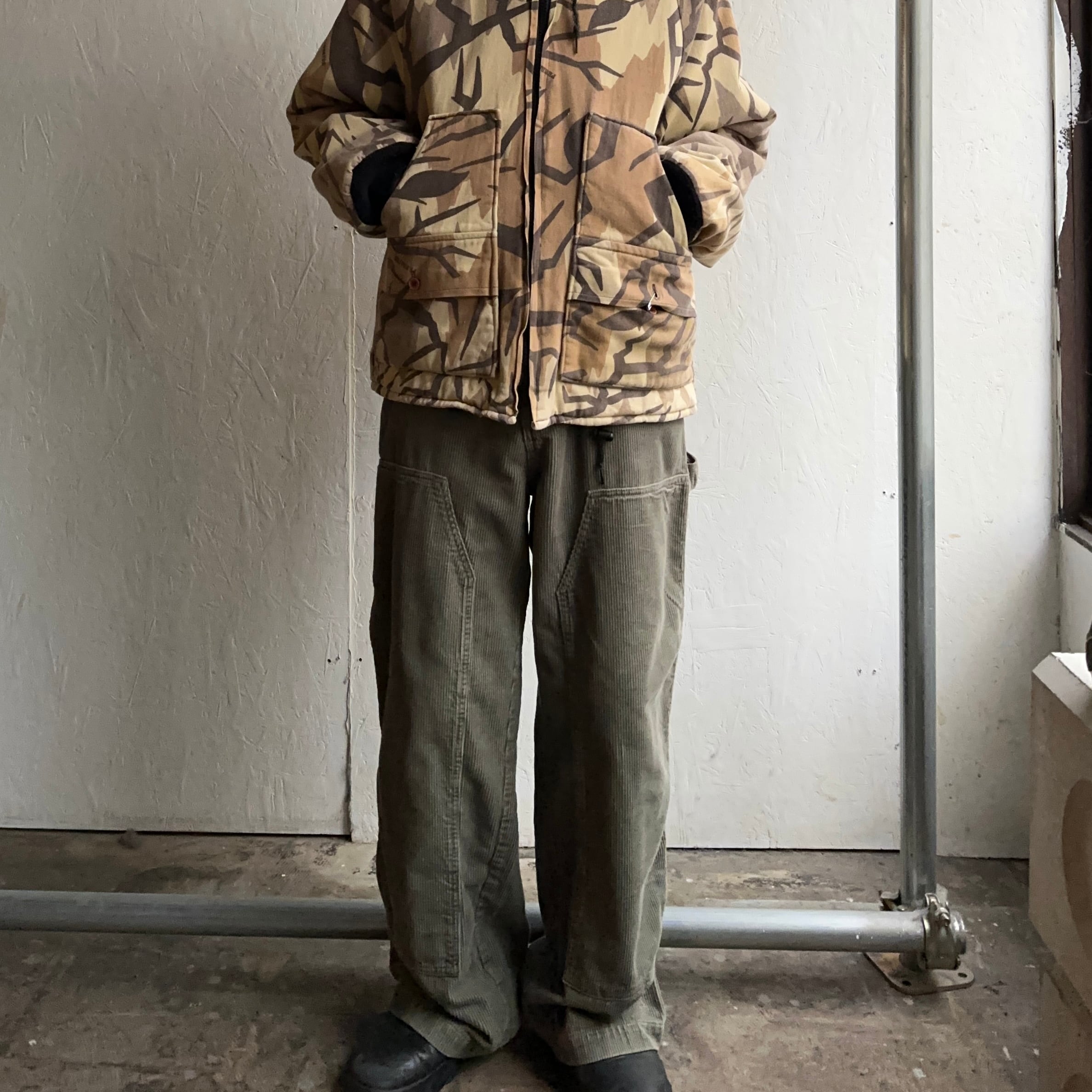 異素材ダブルニーでカーハートとはまた違った印象です。